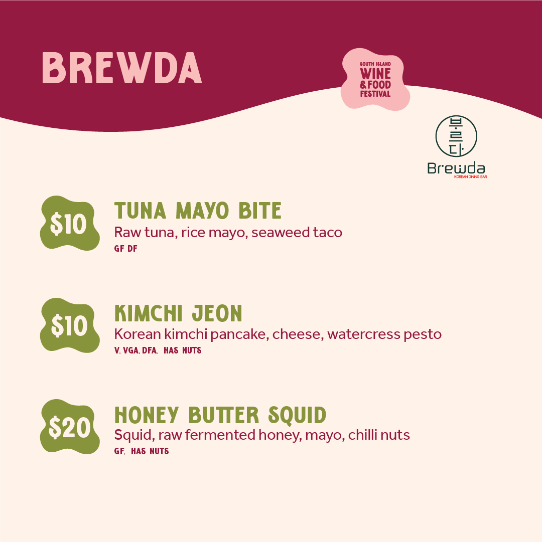 Brewda serves bold Korean flavours with a buzzing, lively vibe in The Terrace Courtyard. Shareable plates, house-made kimchi, and inventive drinks make every visit a taste adventure. Executive chef Cian Curtin and head chef Jake Lee put a fresh twist on traditional flavours. Winner of Outstanding New Establishment at the 2024 Canterbury Hospitality Awards, Brewda is a must-visit in Ōtautahi.