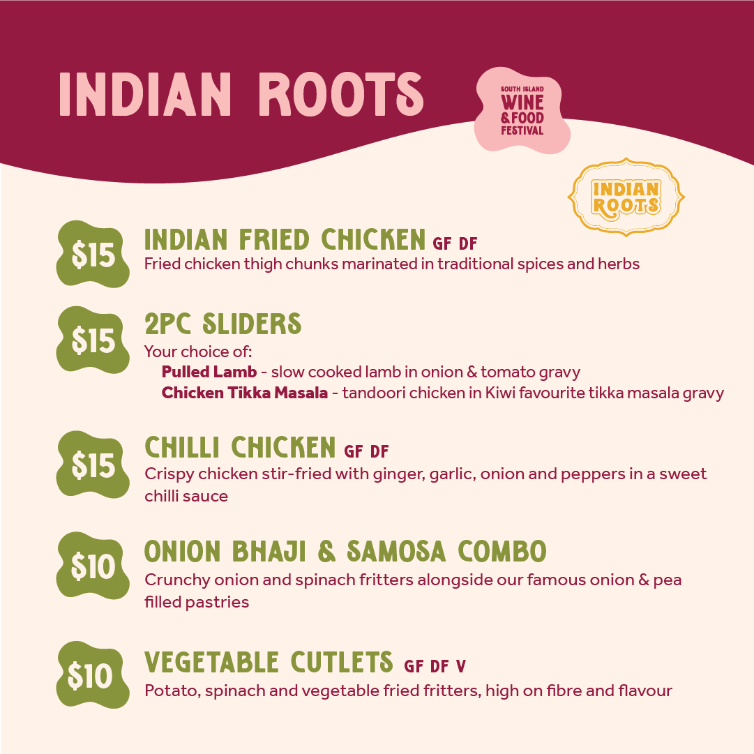Indian Roots serves rich, aromatic dishes full of spice and warmth. Homestyle favourites and street classics like Mutton Seekh Masala and Chicken Changezi make for a festival feast that feels like family. With gluten-free, vegan, vegetarian, and dairy-free options, everyone can join in on the flavour. Grab a plate in the festival restaurant or takeaway and savour authentic Indian food wherever you like.